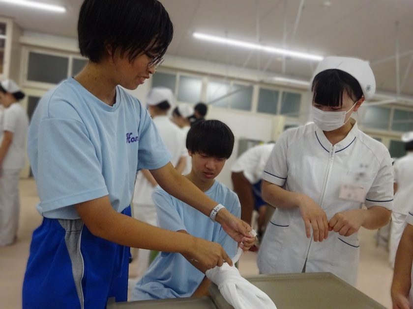 2年生 宝陵高校看護科との救急法交流