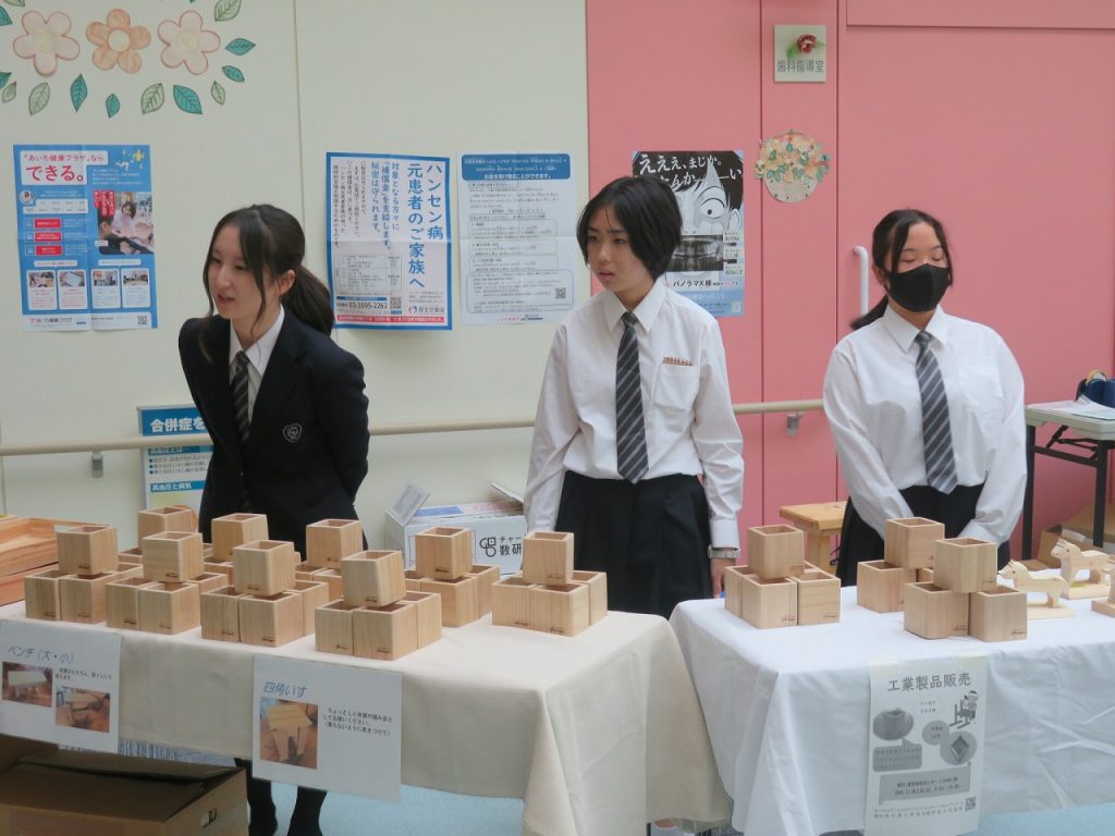 11月2日(日)、健康福祉センター(いかまい館)で開催された「本宮まつり」で、本宮校舎の工業製品=1年生が校内実習で作った製品や、2・3年生が工業の授業で作った製品を販売しました。