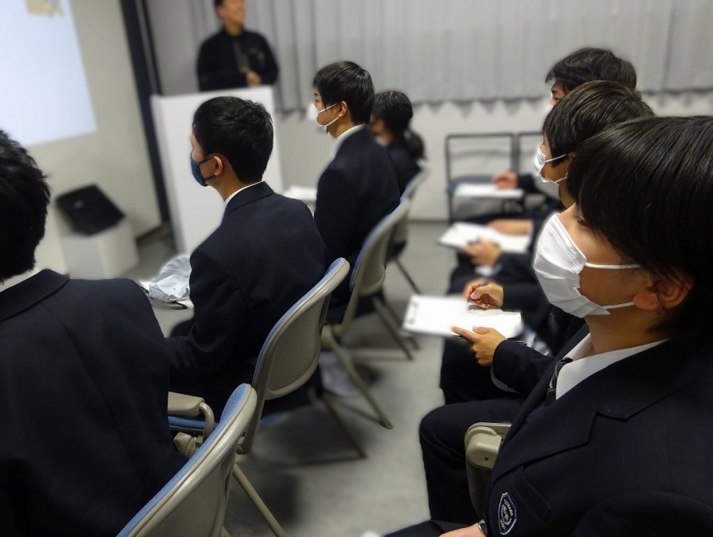 『ステップワークスIWASAKI』では、「宿泊型自立訓練施設」(集団で暮らしながら一人で生活するための力を身につける施設)の見学や、「就労移行支援」(卒業後、就職に向けて働く力を身につけるための福祉サービス)の説明を聞きました。 メモをとりながら真剣に話を聞くことができました。