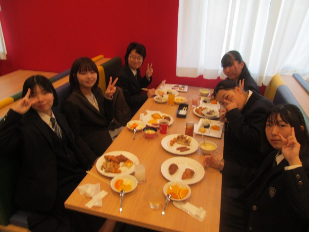 初日は宮島に行き、世界遺産厳島神社を参拝しました。その後、それぞれの班に分かれて、表参道商店街などを散策しました。フェリーに乗っての移動も新鮮でした。広島市内の宿泊所にて、ナイフとフォークを使って、ローストビーフを味わいました。テーブルマナーを事前学習しており、その成果を発揮できました。