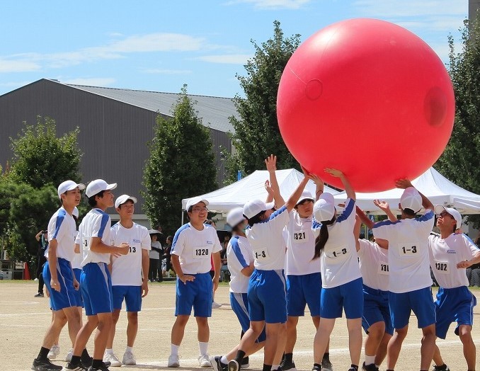 9月26日(金)、宝陵高校との合同体育祭が開催されました。 今年度も、障害物リレー、400mリレー、1000mリレー、玉入れ、(公開種目:大玉送り)、台風の目を行いました。 リレー種目で